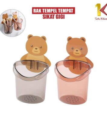 Wujudkan kamar mandi yang rapi dan penuh gaya dengan tempat sikat gigi tempel motif beruang yang super imut ini!...