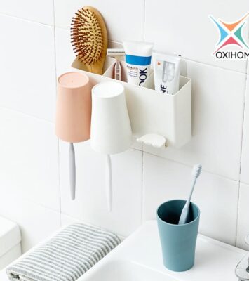 Oxihom Rak Tempat Gelas Sikat Gigi Odol Kamar Mandi Toothbrush Holder