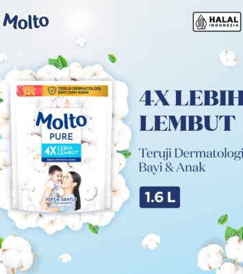 Molto Pelembut & Pewangi Pakaian Konsentrat Pure Soft & Gentle 1.6 L: Lembut untuk Kulit, Baik untuk Bumi