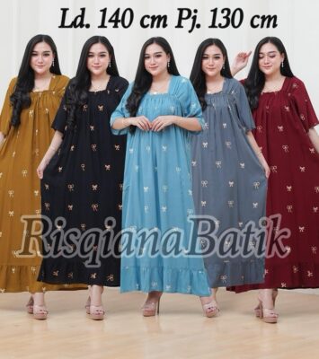 Risqina Batik Dress Midi Fuji Jumbo Long Motif Batik Elegan Ld 140 Bahan Rayon Adem Panjang Super Jumbo Premium