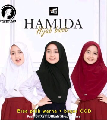 Hijab Sekolah Bergo Hamida Jersey Premium Berlabel, Nyaman untuk Anak TK-SD