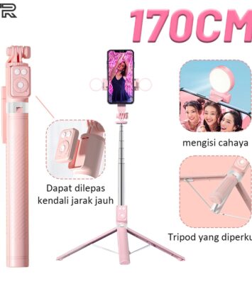Tingkatkan kualitas konten dan foto selfie Anda dengan Tongsis R1S yang multifungsi! Alat ini menggabungkan tripod...