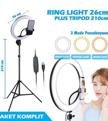 Paket Komplit Ring Light 26cm + Tripod 2,1 Meter untuk Kualitas Konten Profesional