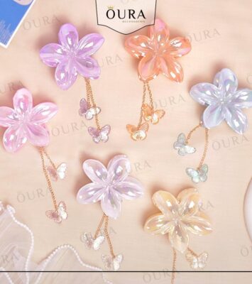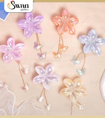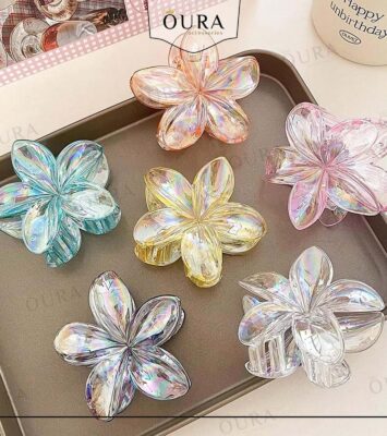 Jepit Rambut Bunga Kamboja Glossy Hologram Motif Kupu Jepitan Bali Flower Korean Hairclip