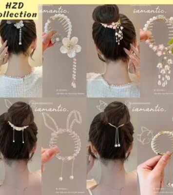 Jepit Sanggul Mahkota Mewah Motif Berlian & Mutiara Gaya Korea – HZD Collection JPT21