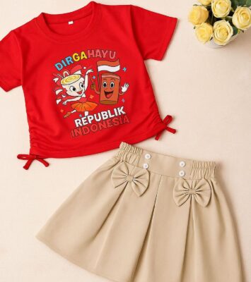 Raih momen kemerdekaan yang spesial dengan Setelan Rok Kemerdekaan Merah Putih untuk putri tercinta Anda (usia 1-8...