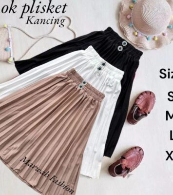 Rok Plisket Kancing Hayget untuk Anak Perempuan Usia 4-14 Tahun