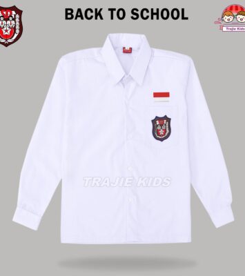 Baju Seragam Sekolah SD Putih Panjang Kelas 1-6 Bahan Katun Oxford Tebal Logo Bordir