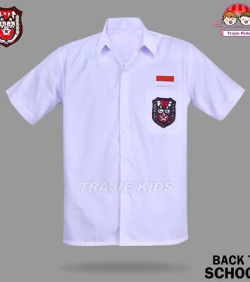 Kemeja Putih Lengan Pendek Seragam SD dengan Bordir Bendera