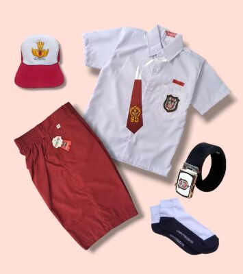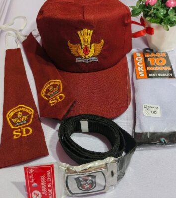 Paket Lengkap Topi SD, Dasi, dan Sabuk Bordir Tutwuri Handayani