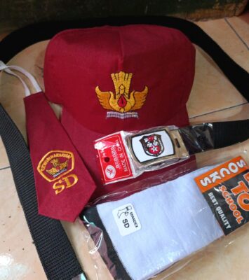 Paket Topi SD dan Dasi + Sabuk Depan Topi Bordir Tutwuri Handayani untuk Laki-Laki dan Perempuan