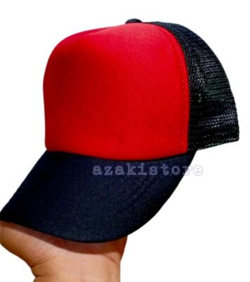 Topi Jaring Polos Distro Hitam Depan Merah Dewasa