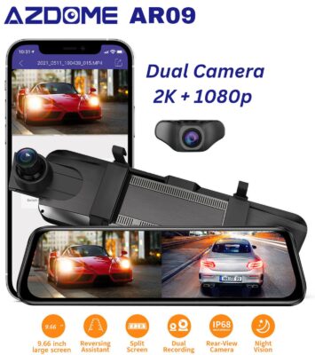 Tingkatkan keamanan dan kenyamanan berkendara Anda dengan Azdome AR09, dashcam mobil all-in-one yang menggabungkan kaca...