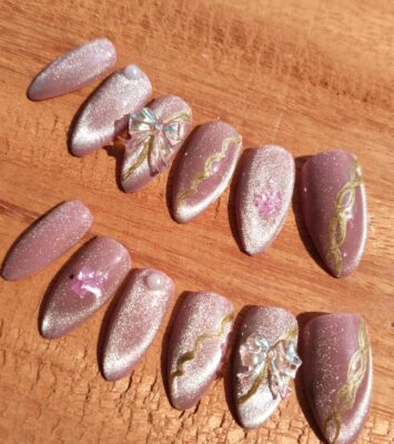 Nail Dusty Pink Cat Eye Chrome dengan Lem Jell Gratis