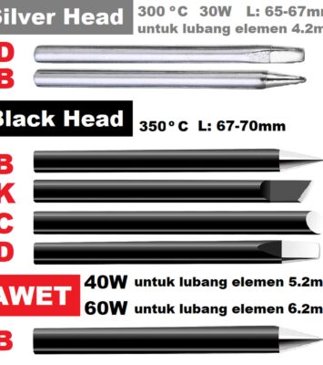 Pastikan Anda memilih varian yang sesuai dengan elemen solder yang digunakan. Detail lengkap dapat dilihat pada gambar...