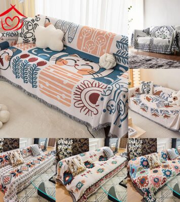 Penutup Sofa Selimut Sofa Cover Motif Nordic 1 2 3 4 Seater Sofa Blanket Dua Sisi Ganda