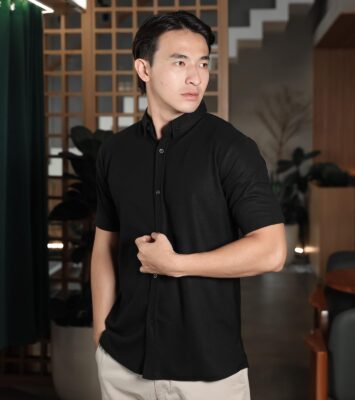 Kemeja Hitam Pria Formal Lengan Pendek Slim Fit Anti Kusut