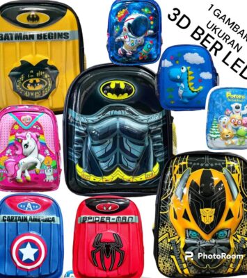 Tas Ransel Anak Karakter Kartun LED 3D untuk SD, TK, dan PAUD