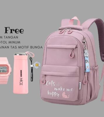 Tas Ransel Sekolah SD Perempuan 2in1 + Bonus Botol Minum & Jam
