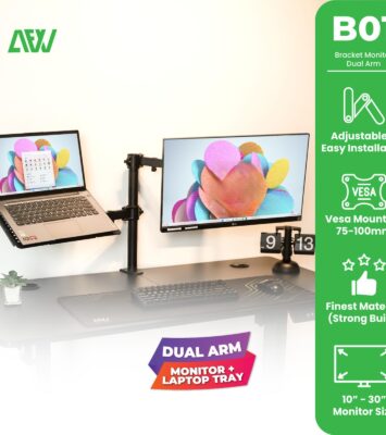 All For Work Monitor Dual Arm B01 Laptop Stand Dudukan Monitor Besi Stainless