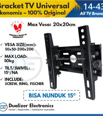 Bracket TV Universal Adjustable Up-Down 15° untuk TV 14-43 Inch, VESA 20x20cm