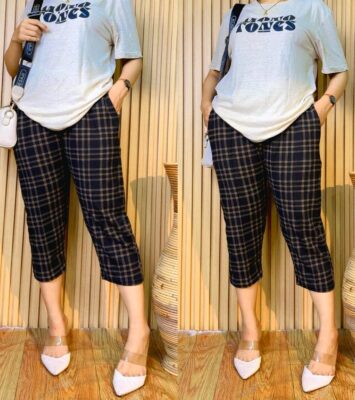 Celana 3/4 Crepe Melar Motif Kotak Lipit Tengah: Stylish dan Nyaman Setiap Saat