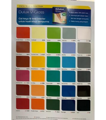 Cat Dulux V-Gloss 1kg adalah solusi sempurna untuk melindungi dan mempercantik permukaan kayu dan besi di dalam...