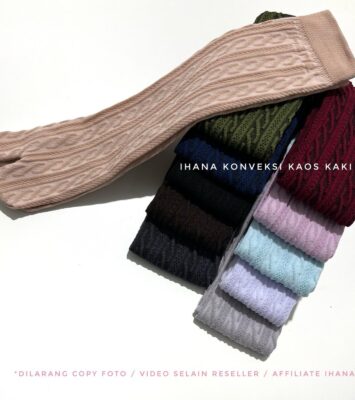 Lusinan Kaus Kaki Jempol Emboss Ihana Panjang L Sebetis / Kaoskaki Muslimah Nylon Spandek