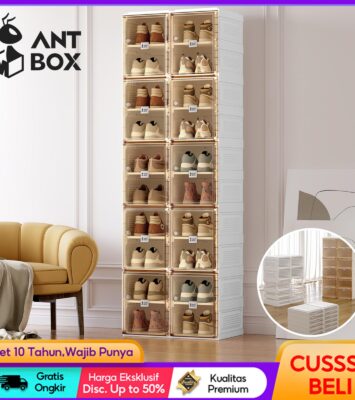 Antbox Rak Sepatu 2 Tingkat Kapasitas Besar Kotak Sepatu Lipat Transparan Minimalis Akrilik