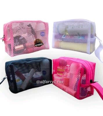 Tas Pouch Make Up Transparan Jaring Polos – Organizer Praktis untuk Travel