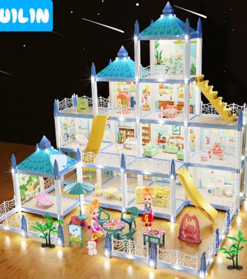 Ruilin Mainan Rumah Rumahan Princess Castle Dengan Boneka Led Lampu