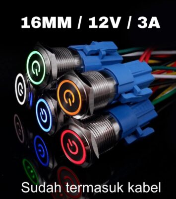Saklar On Off Led Stainless Push Button Switch 16mm 12v 3a Ip66