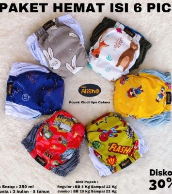 Popok Paket Hemat 6 Biji, Popok Cuci Ulang Clodi Pant AIO Bayi Anak-anak Tipe Celana Clodi Termurah