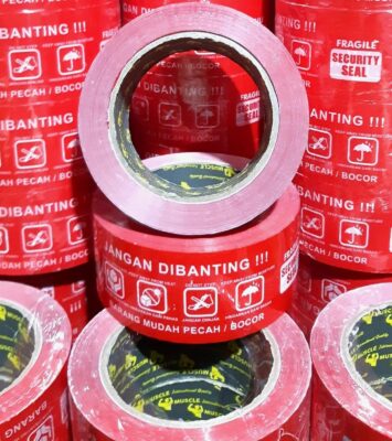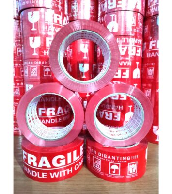 Lakban Fragile Merah 48mm x 100m – Solusi Kemasan Aman dan Efisien