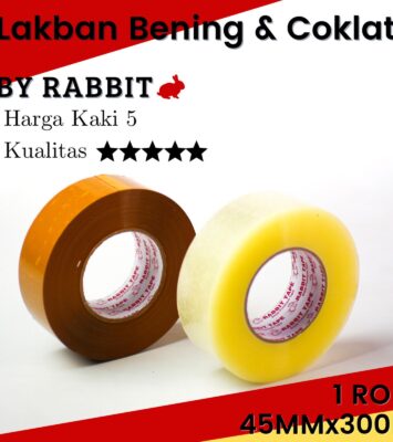 Spesifikasi ProdukDetailMerekRabbit TapeWarna TersediaBening, Coklat (Ready Stock)Lebar2 Inch / 45mm / 4.5cmPanjang per...