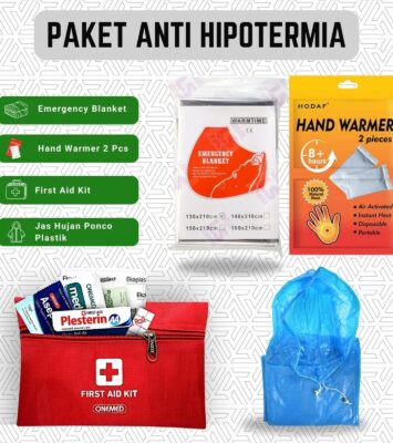 Paket Survival Anti Hipotermia: Selimut Tahan Dingin, Penghangat Tangan, Jas Hujan, dan First Aid Kit Camping Gunung