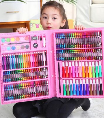 Art Full Set Crayon 208 Pcs / Krayon Alat Lukis Anak Pensil Warna Cat Air Perlengkapan Mewarnai Set