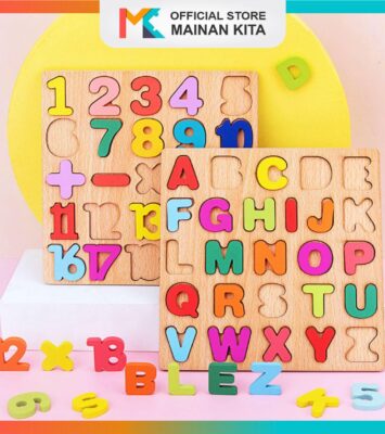 Mainan Edukasi Puzzle Kayu MK102: Ajarkan Abjad, Angka, dan Geometri Sejak Dini