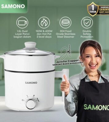 Samono Panci Listrik Hotpot Multi Cooker 1,5L dengan Kukusan Tutup Kaca