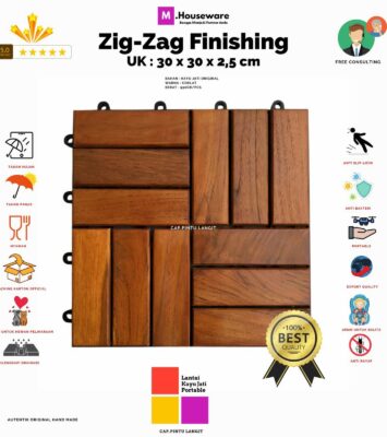 Lantai Kayu Jati Bongkar Pasang Decking Tile Motif Zigzag