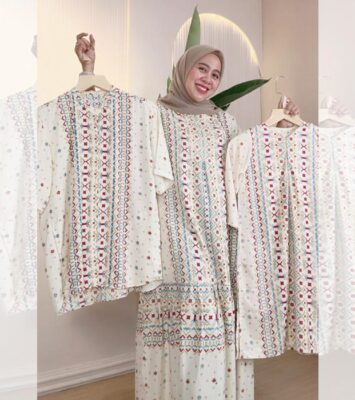 Raya Set Salaman Family Set: Dress dan Hem Dewasa & Anak dari Rayon Premium Tebal