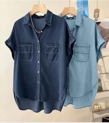 Denim Shirt / Kemeja Wanita Lengan Pendek Jeans Ready Dua Warna