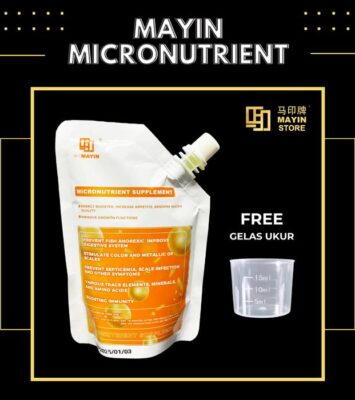 Mayin Micronutrient Supplement adalah solusi lengkap untuk menjaga kesehatan dan keindahan ikan hias air tawar....
