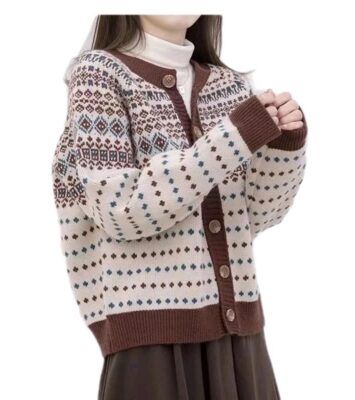 Cardigan Rajut Harajuku Motif Tribal Batik