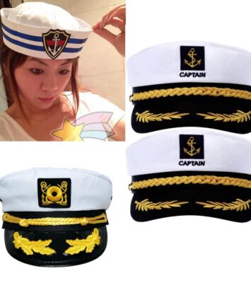 Topi Katun Gaya Kapten Kapal Bordir Jangkar Warna Putih