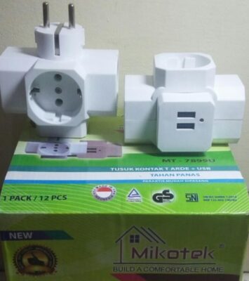 Colokan Steker T Arde + USB Lampu Indikator Terminal Kuningan Mikotek