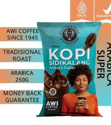 JenisDetailVarianArabica Super 100%KemasanAluminium Foil (250 Gram)SertifikasiBPOM RI MD, 100% Halal MUIAsalSidikalang,...