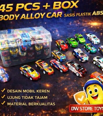 SpesifikasiDetailJumlah Isi45 pcs mobil mainan dalam 1 kontainer boxBahan BodyMetal Alloy (logam paduan) yang kuat dan...