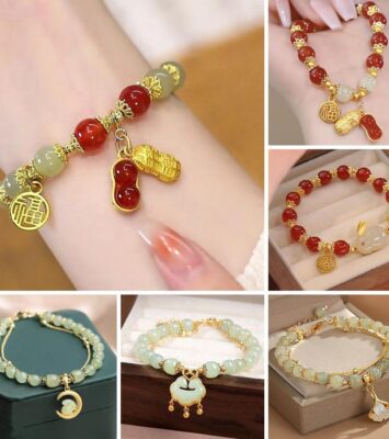 Gelang Manik Kaca Pembawa Keberuntungan Dengan Liontin Giok Hetian Kelinci
