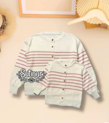 Cardigan Khalisa Motif Salur: Couple Stylish untuk Ibu dan Anak